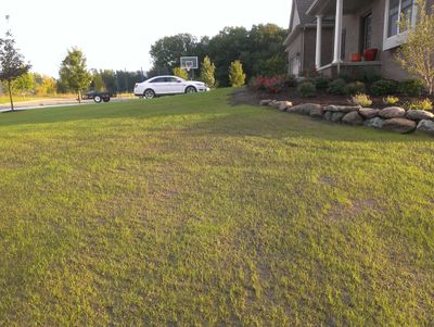 A sprinkler system may be helpful if you are not able to move hoses and sprinklers as required or if you are trying to water a very large area. If you do not have a sprinkler system, depending on the size of the area seeded, you may need to move sprinklers and/or hoses around your yard to make sure all the seeded areas get plenty of water. Remember, watering is a very important part of establishing a plush, thick lawn. Another thing to think about is that mother nature does not always come through as we wish and that is why we must provide water for the new seedlings. We do suggest that you water your lawn for 6-8 weeks. If you water the lawn for a couple of weeks and then get tired of moving hoses, you risk killing new seedlings that may have germinated but have insufficient root establishment to support plant life during dry conditions. Also keep in mind that with an automatic sprinkler system you still have to monitor watering. If they are forecasting rain for a couple of days you will have to cut back on watering. If your sprinkler system is equipped with a moisture sensor, you must remember that your sprinkler system will shut down automatically after a rainfall has occurred. If you program your controller to water frequently and you do not monitor the watering, you could very well experience problems caused by over watering. Refer to “Watering” for more information.